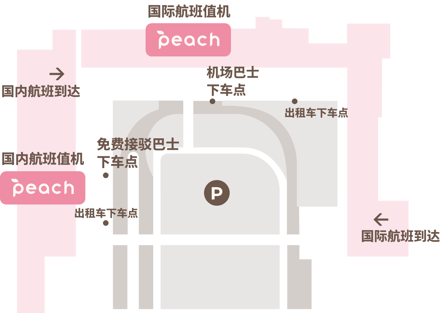 ※请在航班信息显示屏上确认Peach的机场柜台