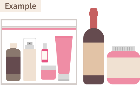 Those containers which are under 100ml(g) are placed in a clear plastic zip-top bag with a maximum volume of 1