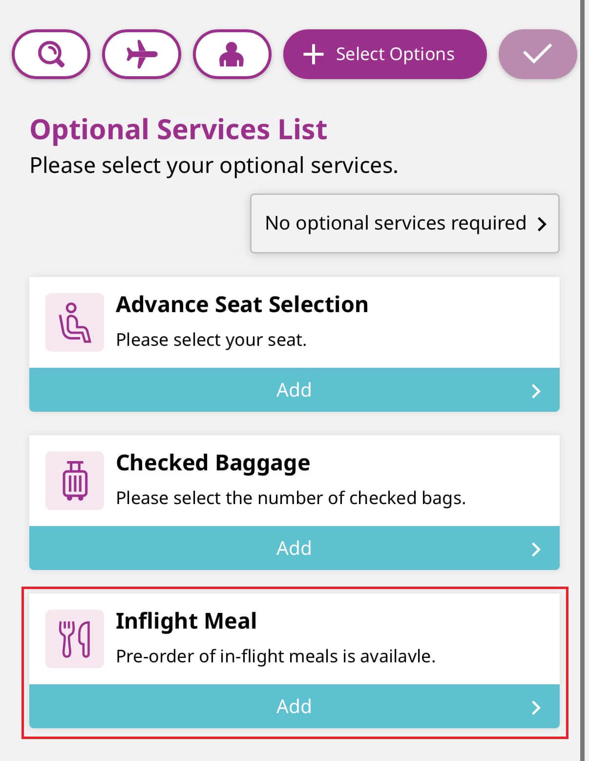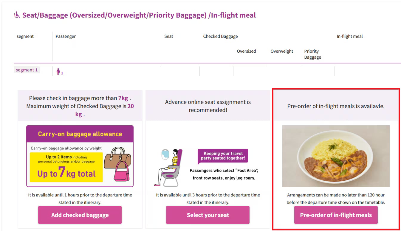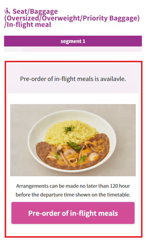 * If you have not yet purchased your flight ticket, you can order your meal when you book your ticket.