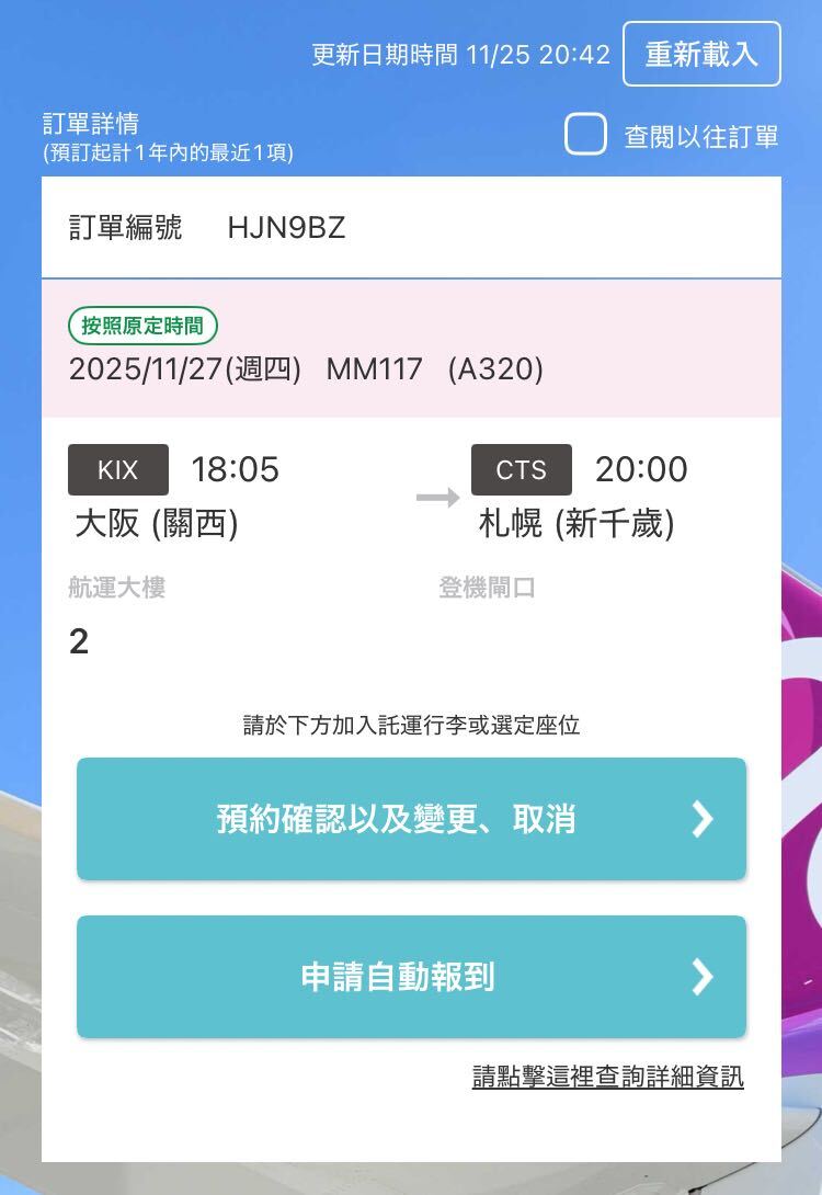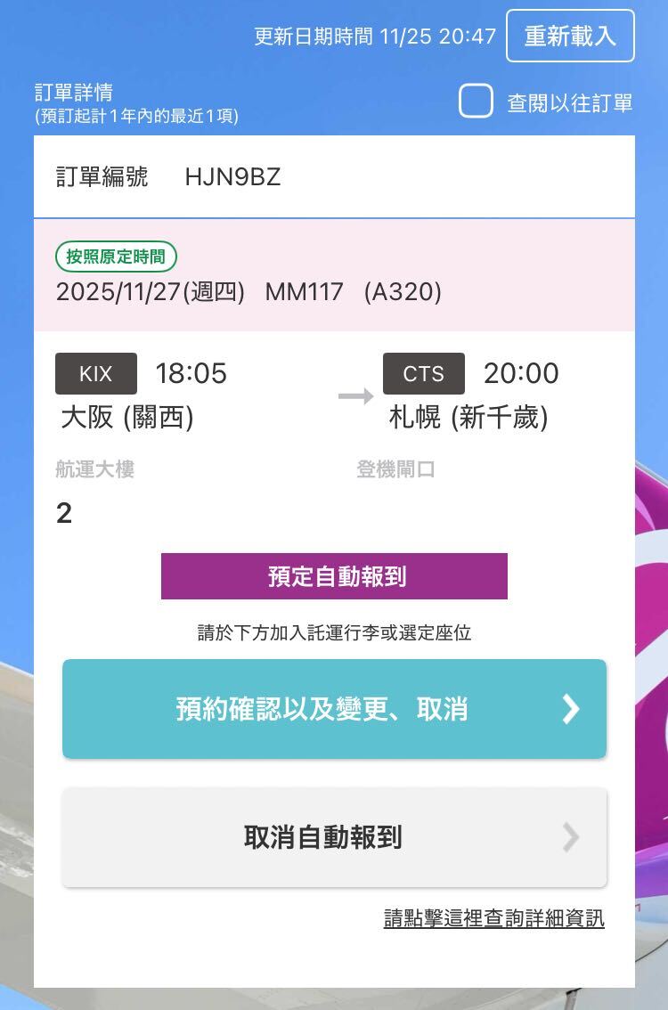 ・未有登入Peach帳號的預訂