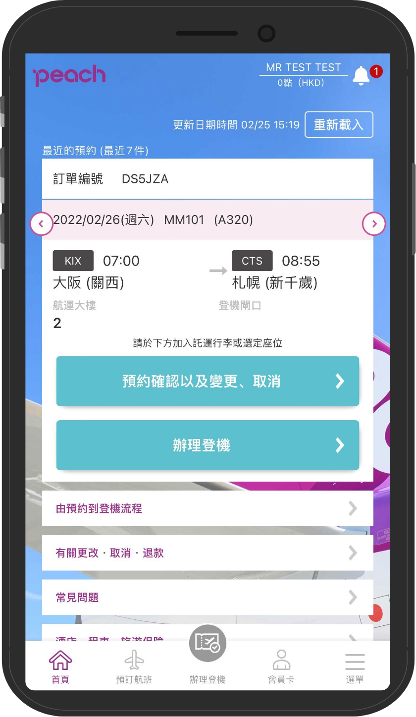 - App登機手續可於原定航班時間35分鐘前開始辦理。
