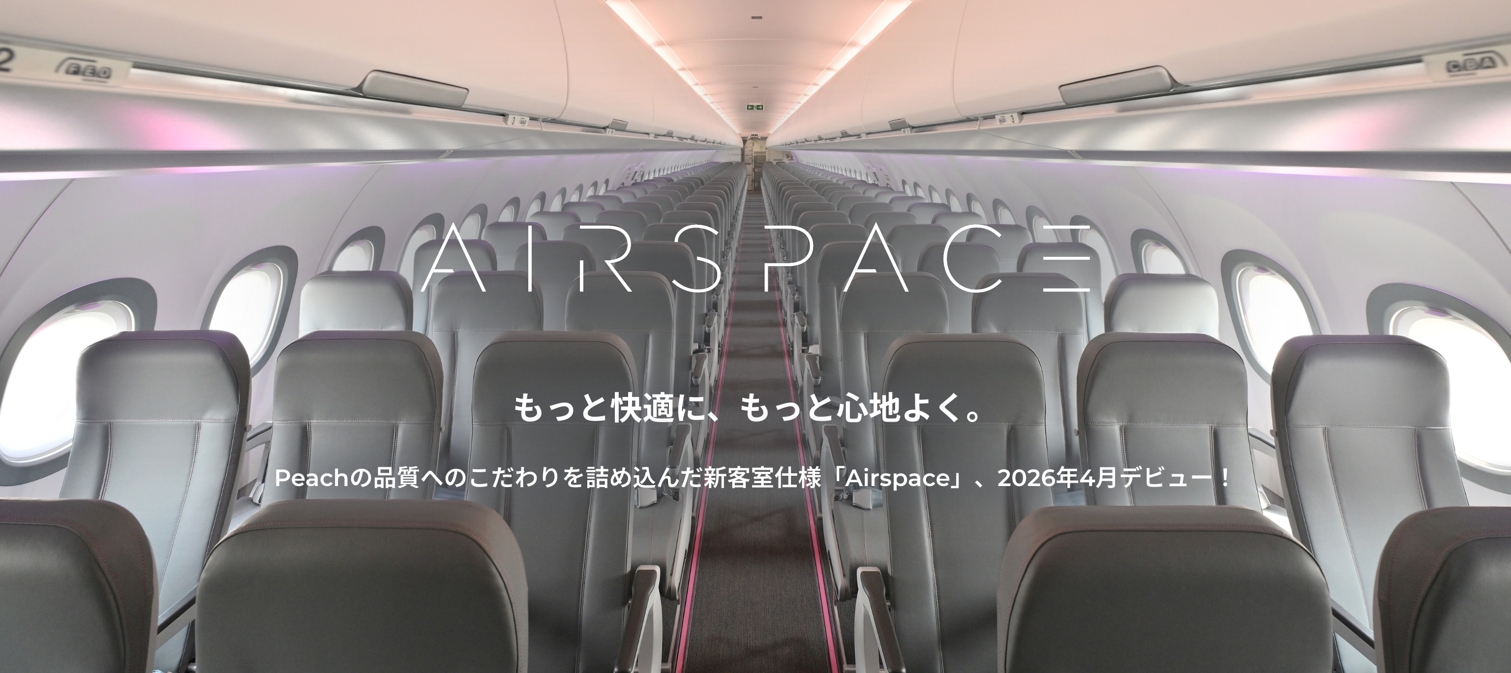 「Airspace」はエアバスの新客室仕様です。Peachでは「Airspace」のPremiumを採用。