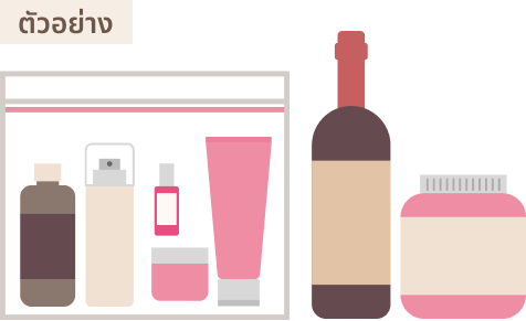 *ถ้าบรรจุภัณฑ์มีขนาดใหญ่กว่า 100ml (g) หรือไม่มีถุงพลาสติกใส ให้ทิ้งหรือนำไปโหลดเป็นสัมภาระใต้ท้องเครื่อง