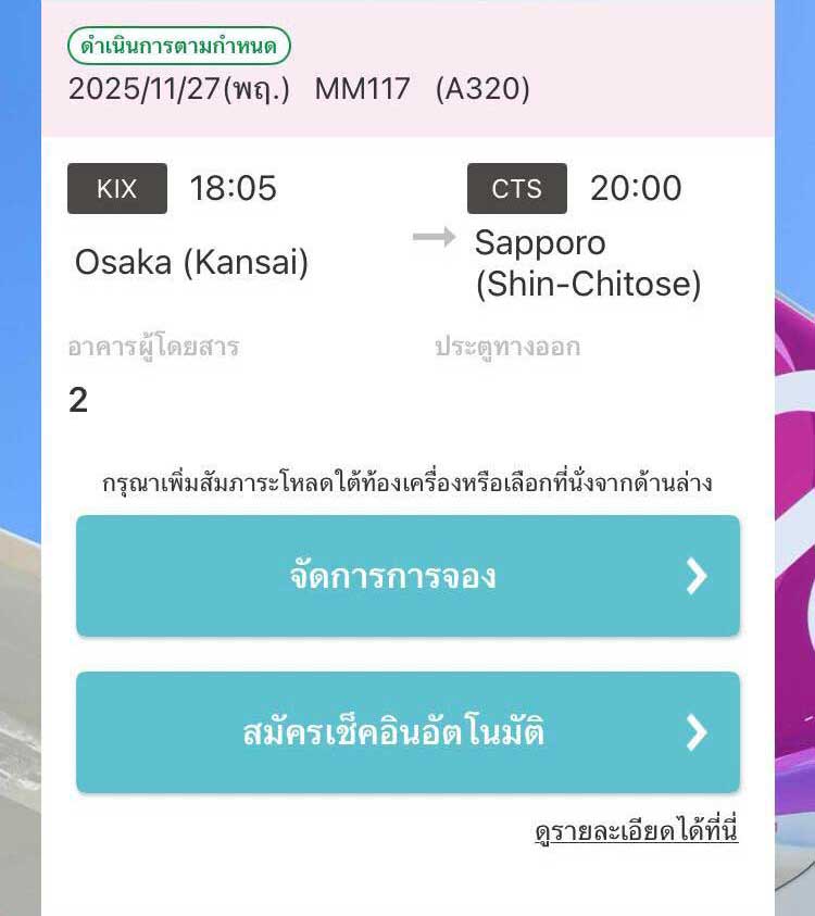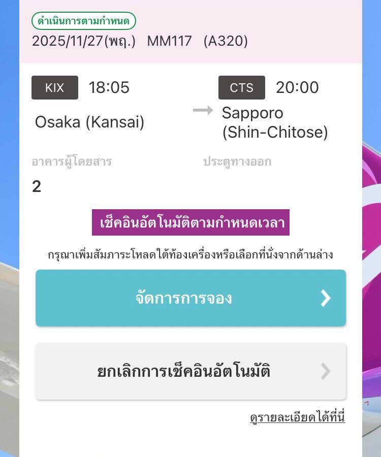 - - หากคุณเปลี่ยนเที่ยวบิน การสมัครเช็คอินอัตโนมัติของคุณจะถูกยกเลิก กรุณาสมัครใหม่อีกครั้ง