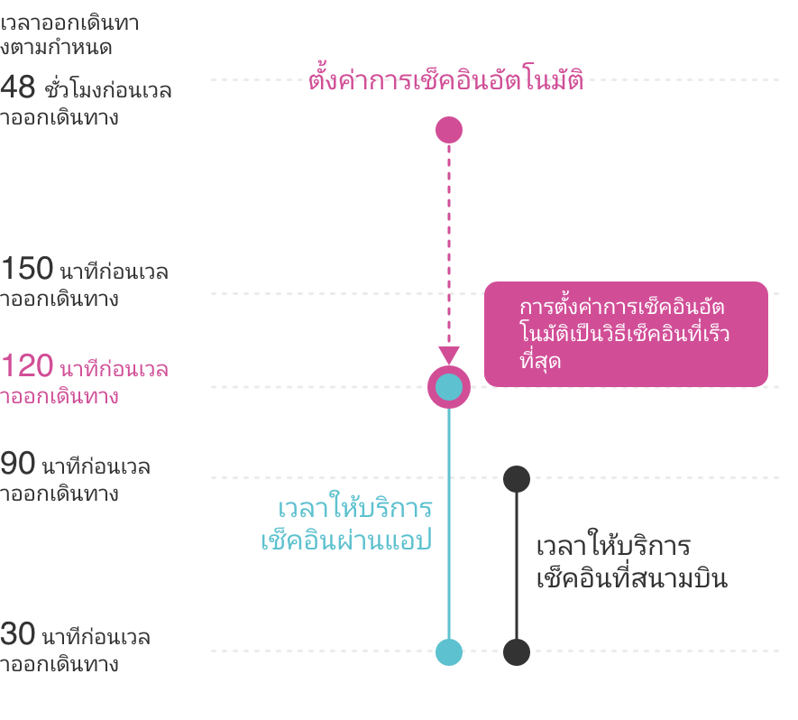 กรุณาดำเนินการตามขั้นตอนให้เสร็จสิ้น 3 ชั่วโมงก่อนเวลาออกเดินทาง