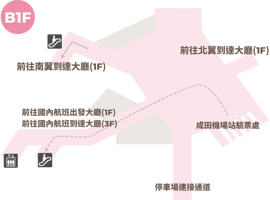在成田機場第1航站樓下車後,請前往1樓的國內航班報到櫃檯。